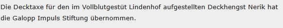 Ihre Spende wird den Galoppsport-veranstaltern für die Züchterprämien zur Verfügung gestellt oder für Ihre Patenschaftsstute.